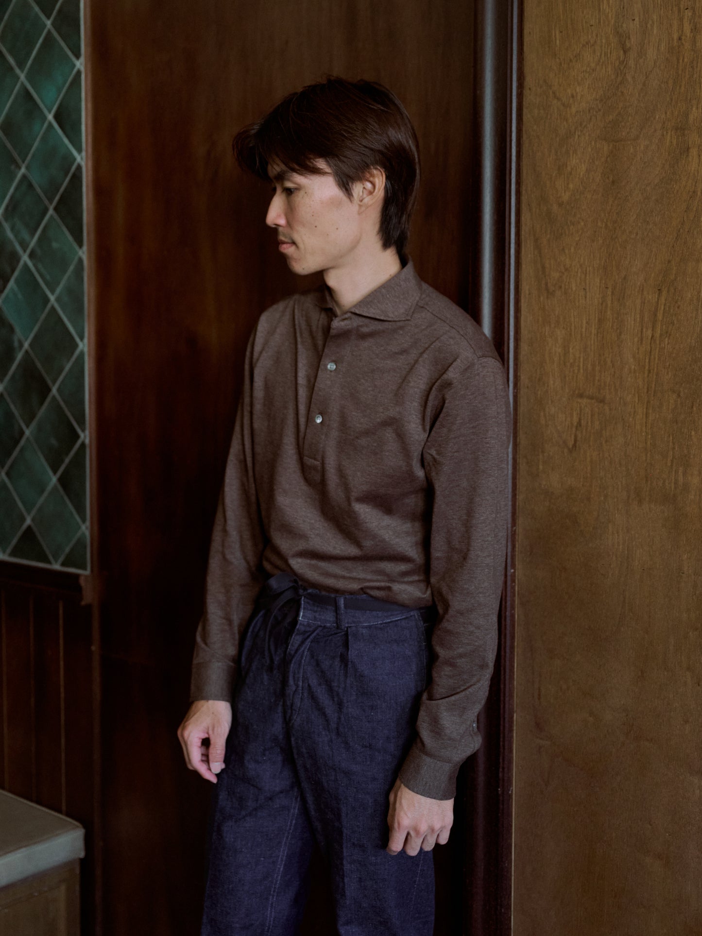 Ascot Chang | Cotton Pique One-Piece Collar Polo Brownish