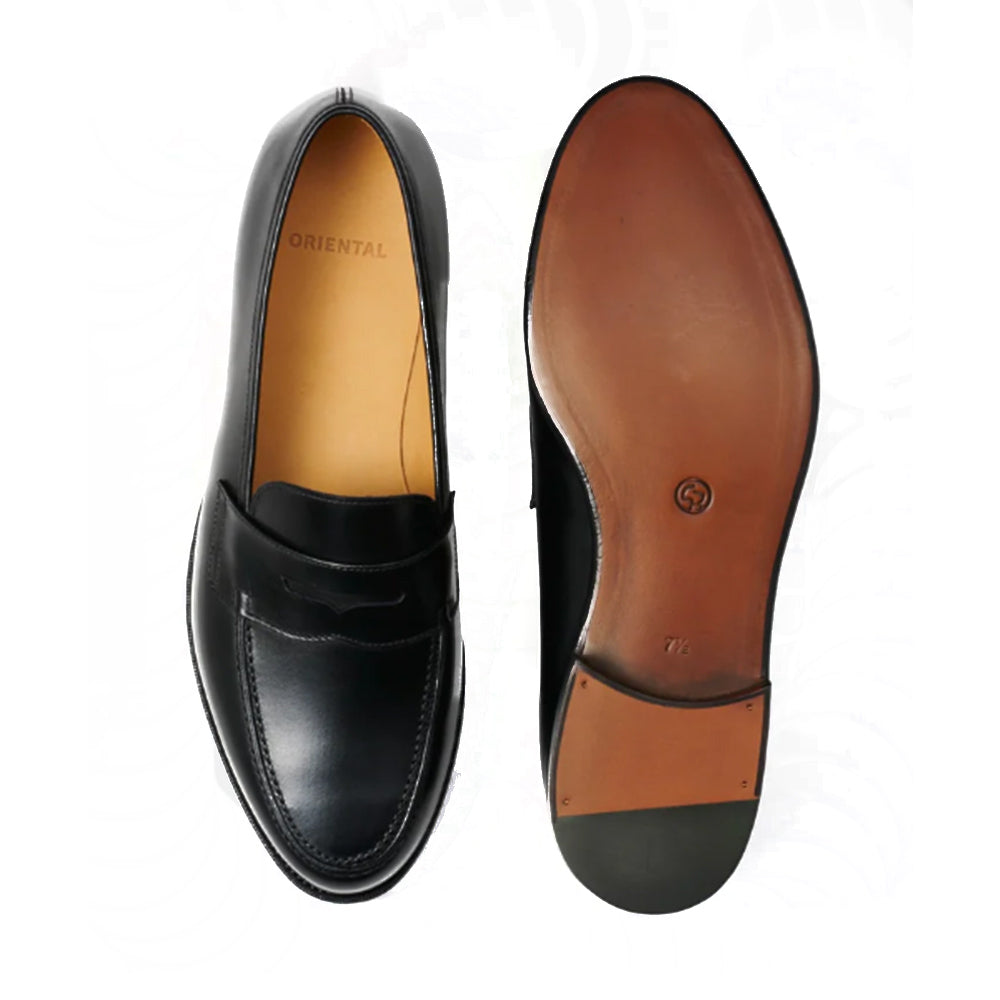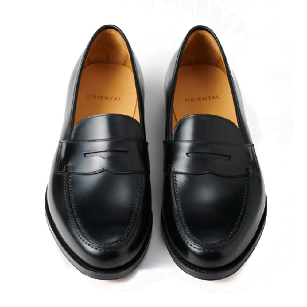 An orthodox black penny loafer, using Oriental Shoemaker's 419 last with excellent balance design.