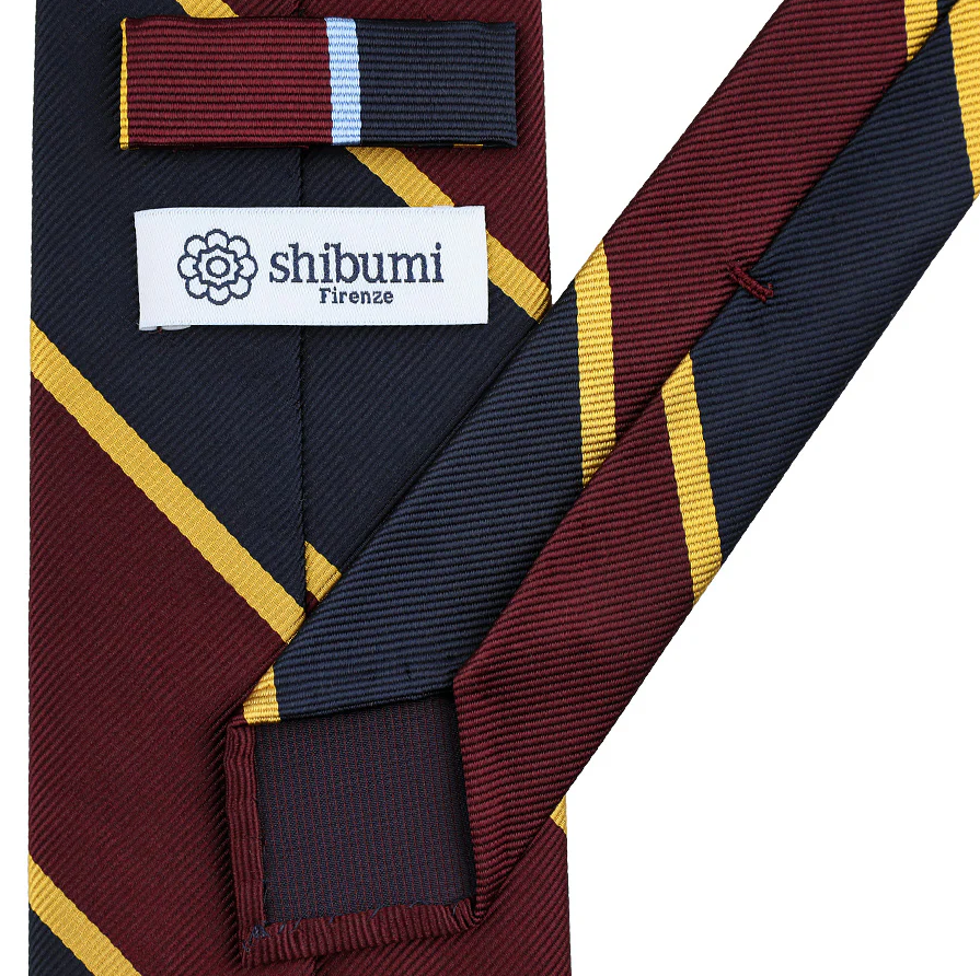 Shibumi Firenze | Japanese Repp Stripe Silk Tie Navy / Burgundy / Gold